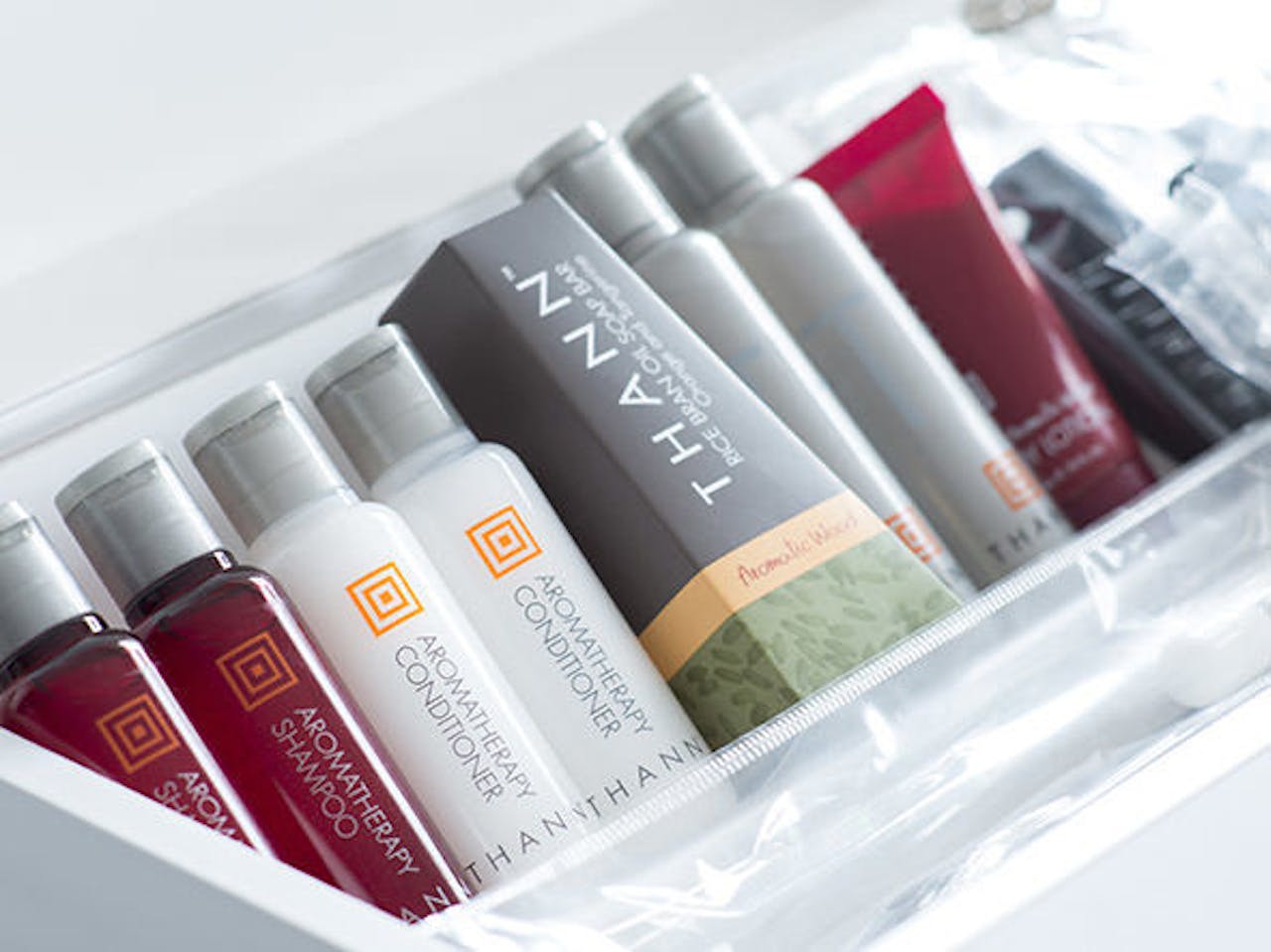アメニティは洗面台にある箱の中に入っています。ご覧のとおり、かなり種類が沢山詰め込まれている感じでテンション上がります。